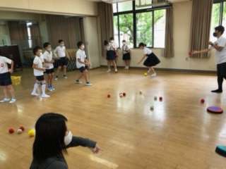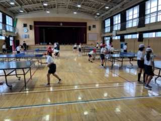 室内運動クラブは、卓球をしていました。屋外運動クラブは、朝までの雨のため運動場が使えず、多目的室でボッチャをしていました。