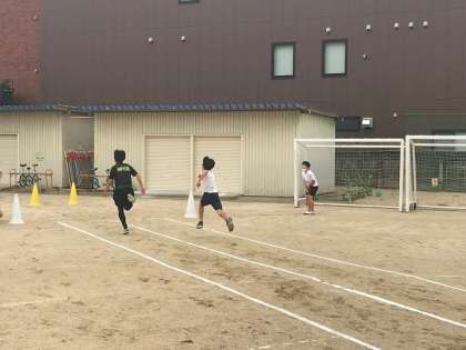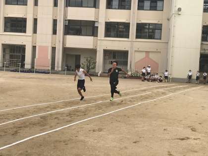 担任の先生と,クラスで一番速い児童が走って、かなりいい記録が出たようです。
