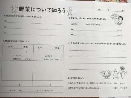 大成小学校の栄養教諭の先生に、5年と3年の栄養教育の授業をしていただきました。