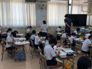 3年生の算数科の授業の様子です。わり算の練習問題をしていました。1つずつていねいに取り組むことが大切です。こつこつがんばりましょう。