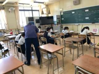 5年生の算数科の授業の様子です。習熟度別少人数で授業を受けていました。わり算の練習問題を解いていました。わり算は、割り切れずにあまりがでたり、四捨五入をする問題もあり難しくなります。がんばりましょう。