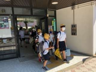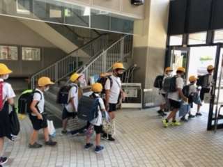 今日は、集合場所まで集団下校をします。水分補給をして出発しました。