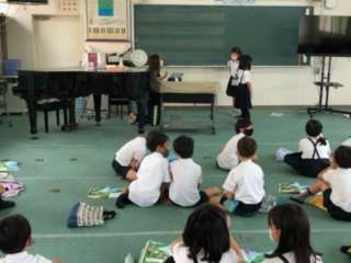 2年生の音楽科の授業の様子です音楽室で歌のテストをしていました。曲に合わせて気持ちよく歌っていました。点数は、何点かな?
