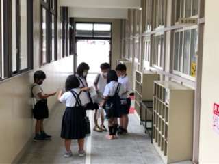 2年生が、1年生を案内して各場所の説明をしていました。校長室では、初めて入ったという子が多くいました。回ったところは、台紙にシールをはっていました。みんな全部回れたかな?