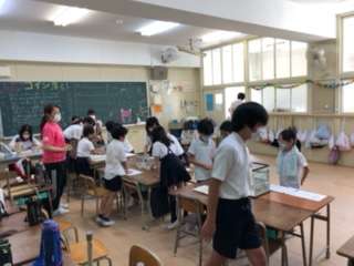 コイン落としの様子です。入れ物大きさで得点が変わります。みんな高得点を狙っていました。