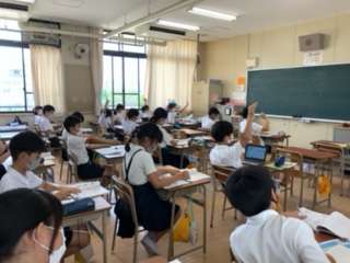 6年生の算数科の授業の様子です。習熟度別少人数で授業を受けていました。円の面積の応用問題を解いていました。図形を変形させて考えると解きやすいので、焦らずにじっくり見て考えましょう。