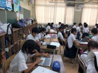 5年生の情報教育の授業の様子です。SNSについての話を聞いていました。とても便利なツールですが、気をつけないといけないことがたくさんあります。ルールを守って使いましょう。