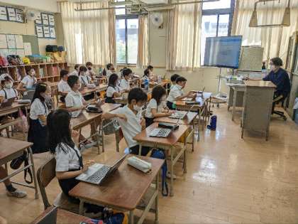 情報教育の授業の様子です。パソコンのスカイメニューを使って学習をしていました。それぞれが静かに一生懸命パソコンを操作している様子に、子ども達の成長を感じました。すごいですね。