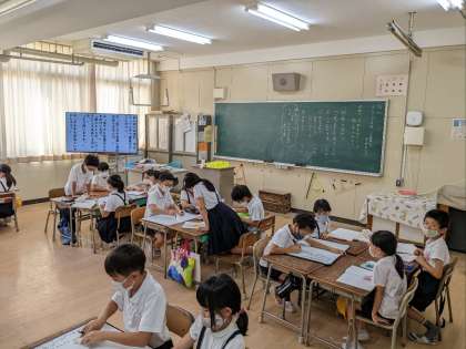 国語の授業の様子です。話し合い活動について学習学習していました。。グループに分かれて司会を中心にして、話し合っていました。誰でも司会ができるといいですね。がんばりましょう
