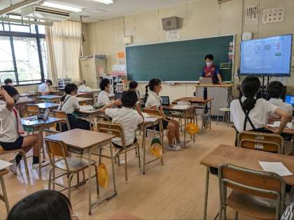 算数科の授業の様子です。習熟度別少人数で授業を受けていました。画面を見ながら練習問題を解いていました。多くの問題をこなすことで力は定着していきます。がんばりましょう。