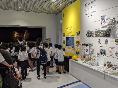 街中での身の守り方を体験しました。映像がリアルで上からガラスや看板が降ってきました。怖かったです。