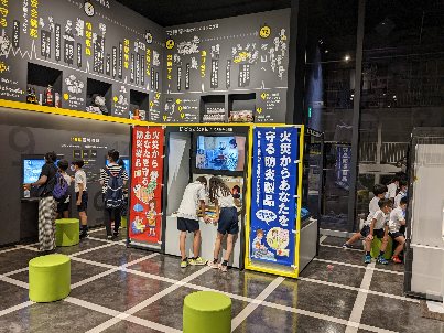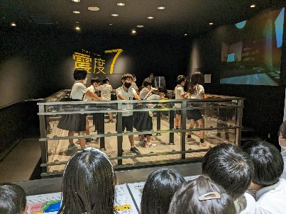 続いて、震度7の揺れを体験しました。阪神淡路大震災の時の揺れと南海地震の2つ揺れを体験しました。激しい揺れで悲鳴が上がりました。最後に各自でいろいろなコーナーを見学しました。