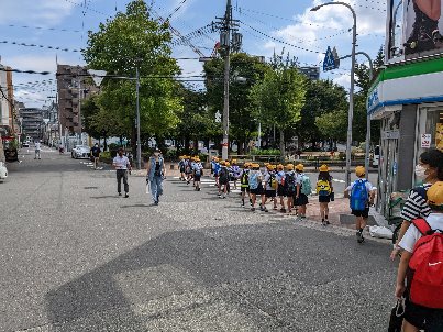 阿倍野防災センターを後にして、学校に向かって出発しました。