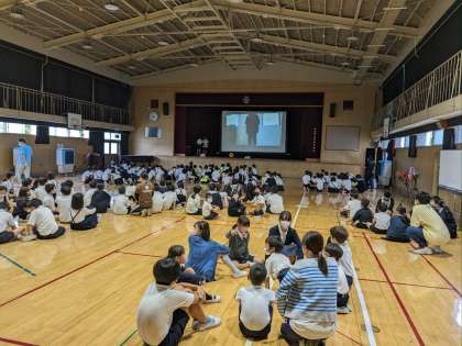 講堂で児童集会を行いました。今日は、先生あてクイズでした。後姿を見て誰かを当てるクイズでした。意外と難しく、全問正解した班はありませんでした。