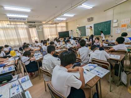 理科の授業の様子です。天気の学習をしていました。雲の量について考えていました。皆さんは雲の量で天気が決まるのを知っていますか。雲の量の割合で快晴・晴れ・曇りなど決まります。詳しくは教科書を見てください。