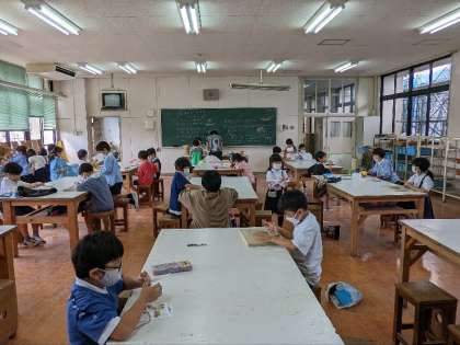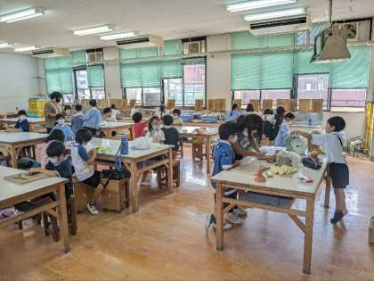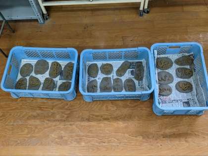 図画工作科の授業の様子です。図工室で陶芸の学習をしていました。名前プレートを作っていました。焼き上がりが楽しみですね。この作品は、陶芸展で展示されます。楽しみにしていてください。