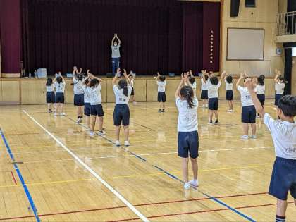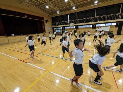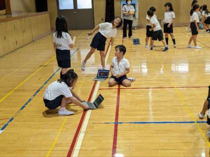 講堂で体育の授業研究会を行いました。表現運動でした。子ども達は、カンガルーやゾウになりきって表現していました。元気に楽しそうに走り回る子ども達の笑顔が素敵でした。