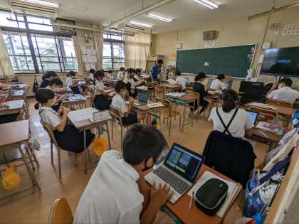 算数の授業の様子です。習熟度別少人数で授業を受けていました。比例の学習でした。比例の仕組みを理解すると、簡単に答えに至るのですがそうでないと、難しい単元です。がんばって仕組みが分かるまで取り組みましょう。