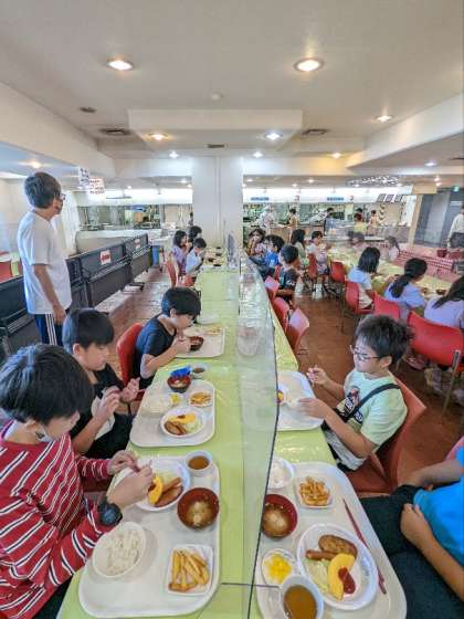 朝食の様子です。メインは、プレーンオムレツです。しっかり食べましょう。