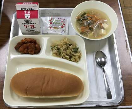 今日の献立は、ヤンニョムチキン、もやしとうふのスープ、切干しだいこんのナムルです。コチジャンやしょうゆ、ごま油などを混ぜ合わせた調味料のことを韓国・朝鮮では「ヤンニョム」と言います。揚げた鶏肉にヤンニョムをからめたものがヤンニョムチキンです。