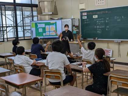 算数の授業の様子です。少人数で授業を受けていました。図形の拡大縮小について学習していました。拡大図はどれなのかを決まりに従って考えていました。ここは大切です。しっかり押さえておきましょう。