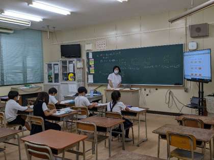 算数の授業の様子です。習熟度別少人数で授業を受けていました。何倍かを求める問題を解いていました。文章題の問題なので読む力が求められます。しっかり読み取りましょうね。