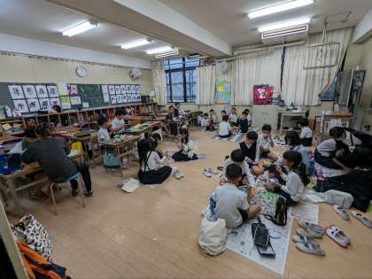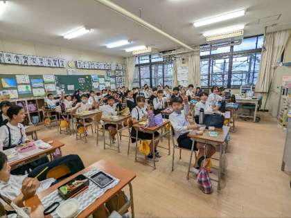 今日は、雨のためお弁当を各学年で食べています。みんな楽しそうです。