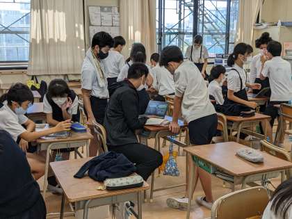 英語の授業の様子です。英語でプレゼンテーションするための資料をパソコンで検索していました。調べる・まとめる・英語でプレゼンをする・・・大変ですががんばりましょう。発表会が楽しみですね。