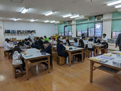創作クラブは、割り箸を使ってアート作品を作っていました。