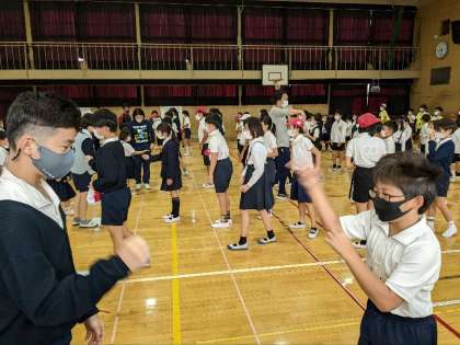 今日の集会は、班別のじゃんけん大会でした。各班のAチーム対Bチームでじゃんけんをしました。中には強い子もいて1人で7人抜きをした子もいました。大きく盛り上がった集会になりました。