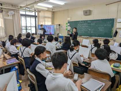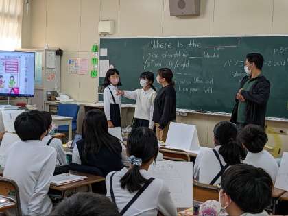 英語の授業の様子です。英語でどこへ行くのかをペアになって紹介していました。