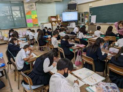 算数の授業の様子です。練習問題を解いていました。九九につながる計算問題でした。スムーズに九九を覚えられるようにがんばりましょう。