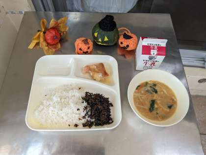 今日の献立は、あかうおのみぞれかけ・みそ汁・牛ひじきそぼろ・ごはん・牛乳です。
