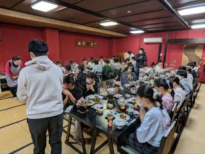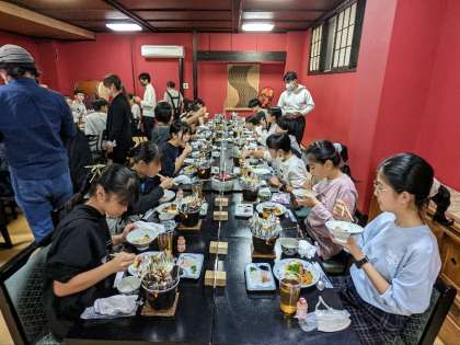 食事の様子です。待ちに待った夕食です。伊勢えびもあります。