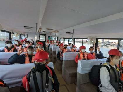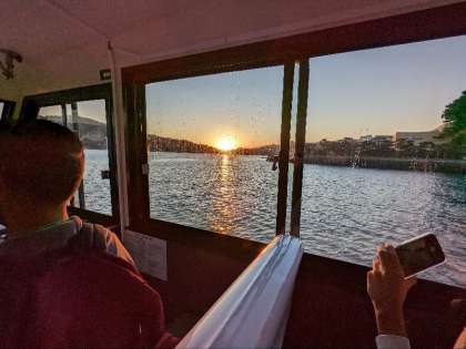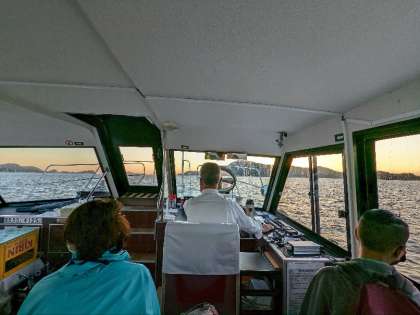 菅島に向かって出航しました。夜明けです。波も穏やかです。
