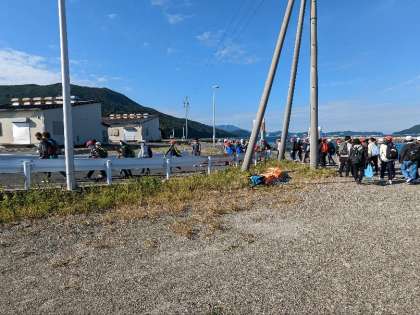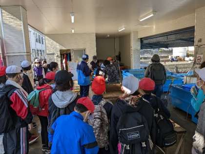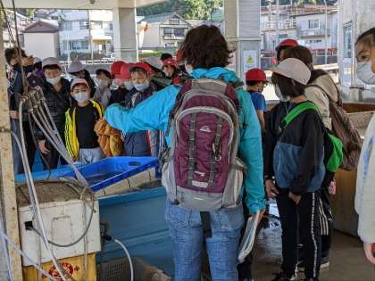 菅島の散策に出発しました。伊勢エビの入札を見学しています。
