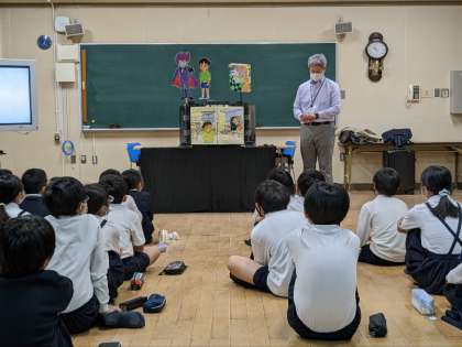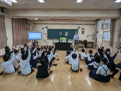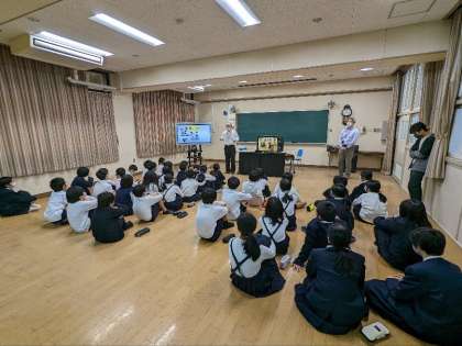 少年サポートセンターの方に来校いただいて、多目的室で非行防止の学習をしました。映像やクイズ、ペープサートを使って指導を受けました。とっても分かりやすかったです。学んだことを忘れず、今後の人生に生かしていきましょう。