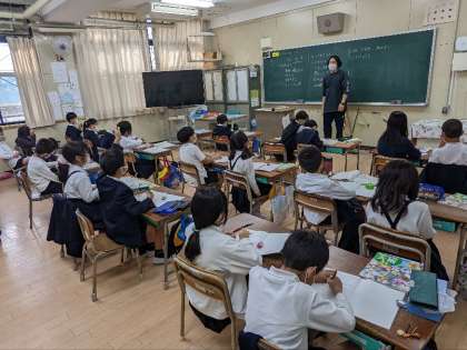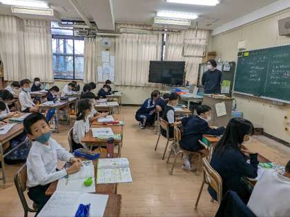 社会科の授業の様子です。スーパーやコンビニ、商店の学習をしていました。どこでどんな買い物をしたか等を話し合っていました。みんなは、日常生活で経験していることなので活発な話し合いができていました。
