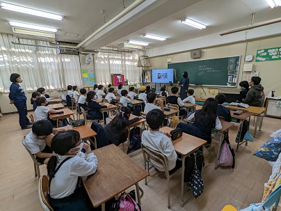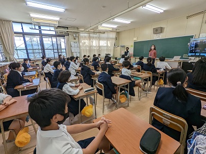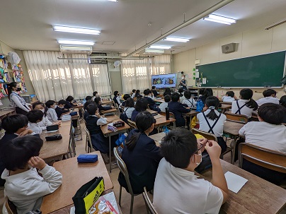 韓国・ドイツ・タイ・ブラジル・ベトナム・中国の6か国の留学生です。映像を使って国の紹介をしていただいたり、質問・交流タイムをとり、いろいろなことを学びました。貴重な経験をした1時間でした。京都教育大学の皆さん、今日はありがとうございました。
