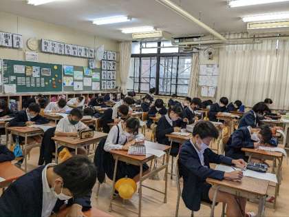 国語の授業の様子です。漢字のテストをしていました。みんな静かに集中して取り組んでいました。さすが6年生ですね。