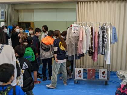 多目的室では、バザーが行われています。11時から半額セールが始まり賑わっています。