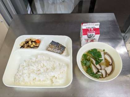 今日の献立は、さごしのごまじょうゆかけ・五目汁・大豆の煮もの・ごはん・牛乳です。