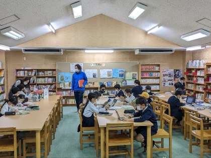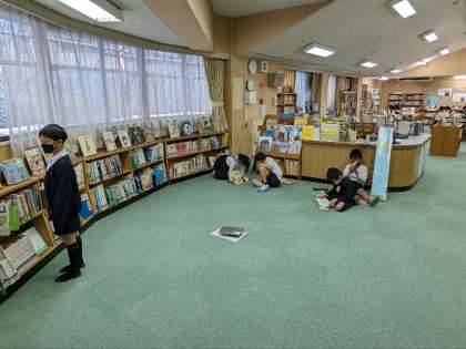 図書館での活動の授業の様子です。パソコンや図鑑などの本を使って調べ学習をしていました。終わった子は、自由読書を楽しんでいました。たくさん本を読んでよい習慣を身につけましょう。