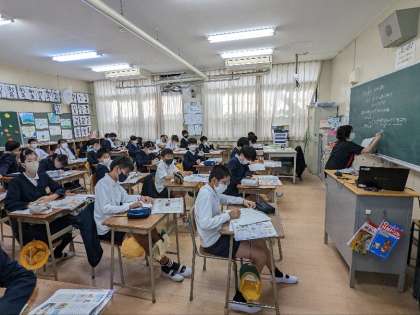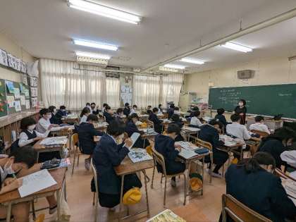 社会科の授業の様子です。江戸時代の文化について学習をしていました。資料集の付録の偉人シールを活用してノートにまとめていました。とても便利になりました。しっかり覚えておきましょう。