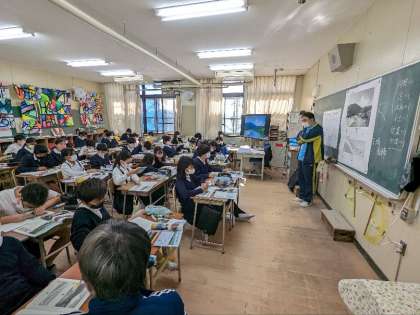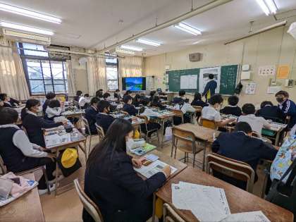 理科の授業の様子です。川の曲がっている所の内外での流れる水のはたらきについて考えていました。皆さんは分かりますか?