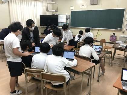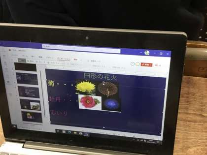 班ごとに決めたテーマにそった画像を集めて編集し、発表用のパワーポイントを作っています。