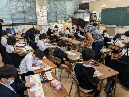国語の授業の様子です。新しい漢字を習っていました。「学」と「校」どちらもいつもいる所なのですぐに覚えられるかな?がんばりましょう。