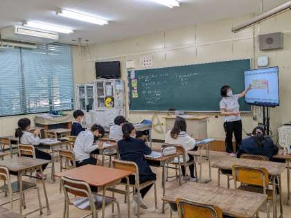 算数科の授業の様子です。習熟度別少人数で学習をしていました。面積の学習です。面積の単位〔1㎠〕を学んでいました。基本中の基本、とても大切です。覚えておきましょう。