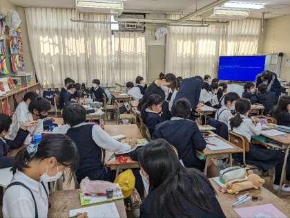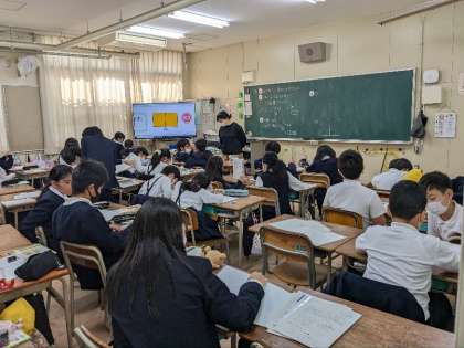 算数科の授業の様子です。わり算の学習をしていました。わりきれない数を分数で表していました。1÷3などは、わりきれないですが分数なら表せます。不思議ですね。