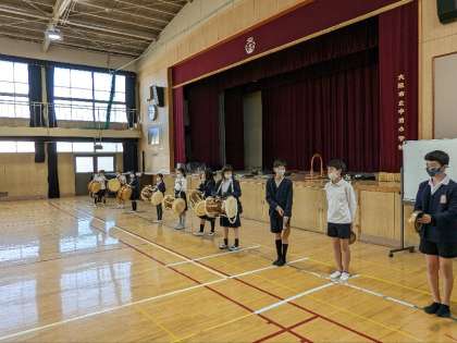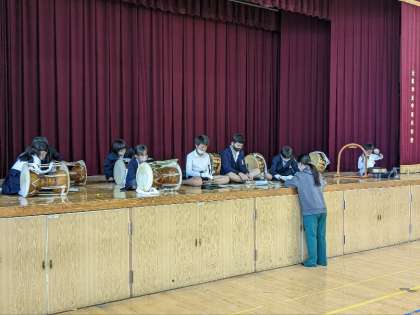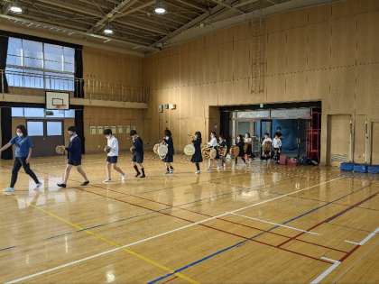 講堂で民族クラブの活動を行いました。発表会に向けての練習を行いました。入場や演奏クイズの出題について等、全体にわたる練習をしました。本番まで後2回です。迫ってきました。自信をもってがんばりましょう。